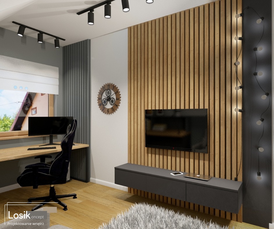 Bo właśnie takie połączenie kolorów przyciąga Waszą uwagę i w takich właśnie kolorach pragniecie stworzyć wymarzone wnętrze dla swoich nastoletnich pociech. Cieszę, się że mogłam spełnić marzenie o pokoju, w którym nastolatek będzie miał wszystko. Czyli duże funkcjonalne biurko, strefę wypoczynku TV i dużą szafę, aby pomieścić ubrania i inne gadżety.