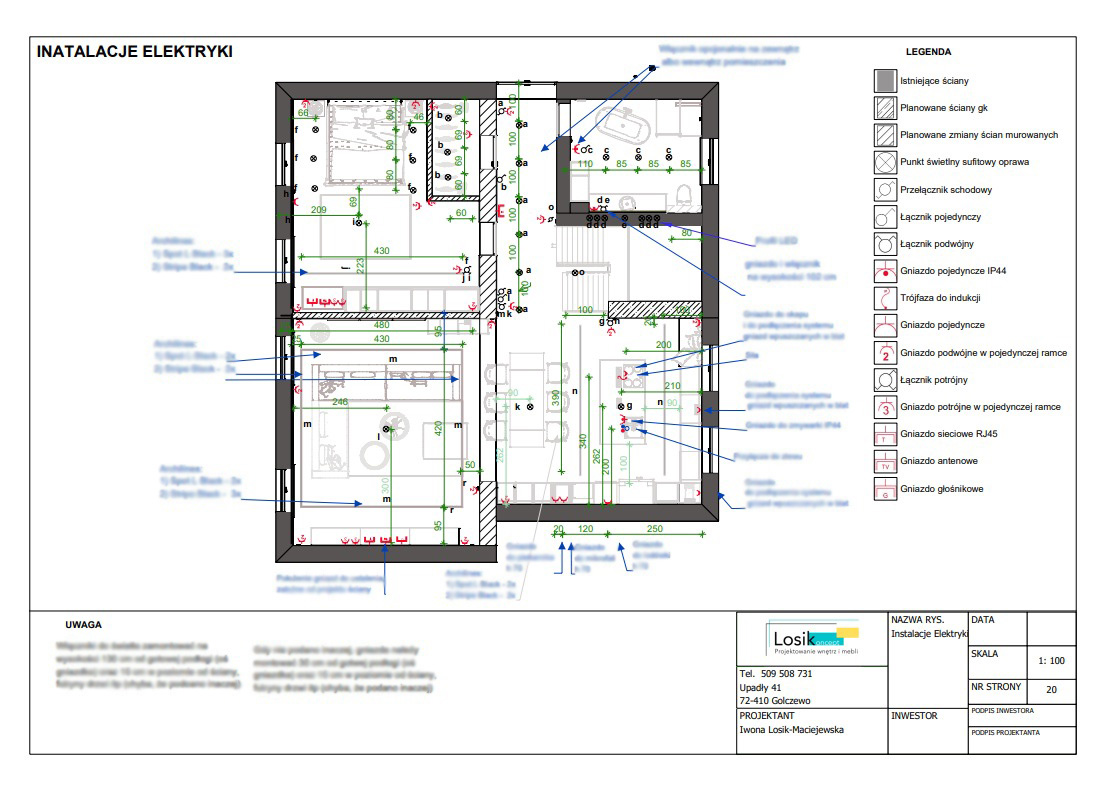 - Projekt rozmieszczenia oświetlania i instalacji elektrycznych.
