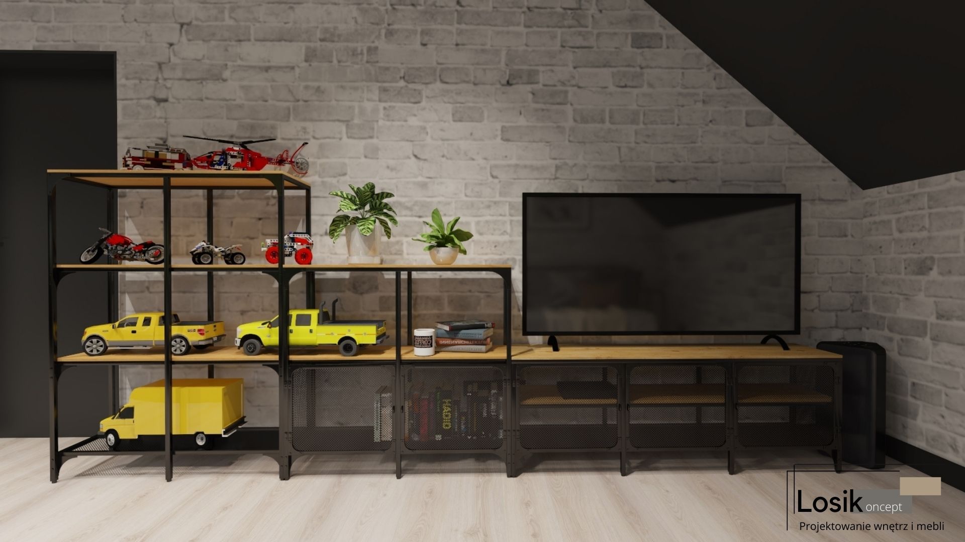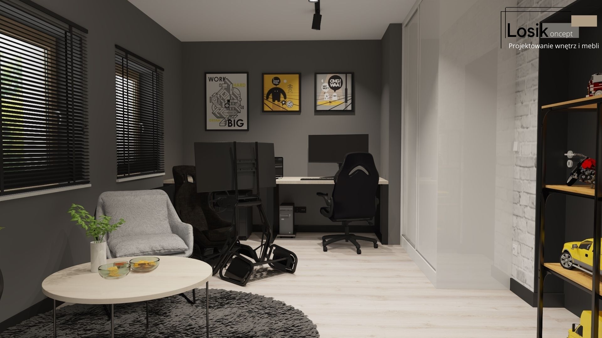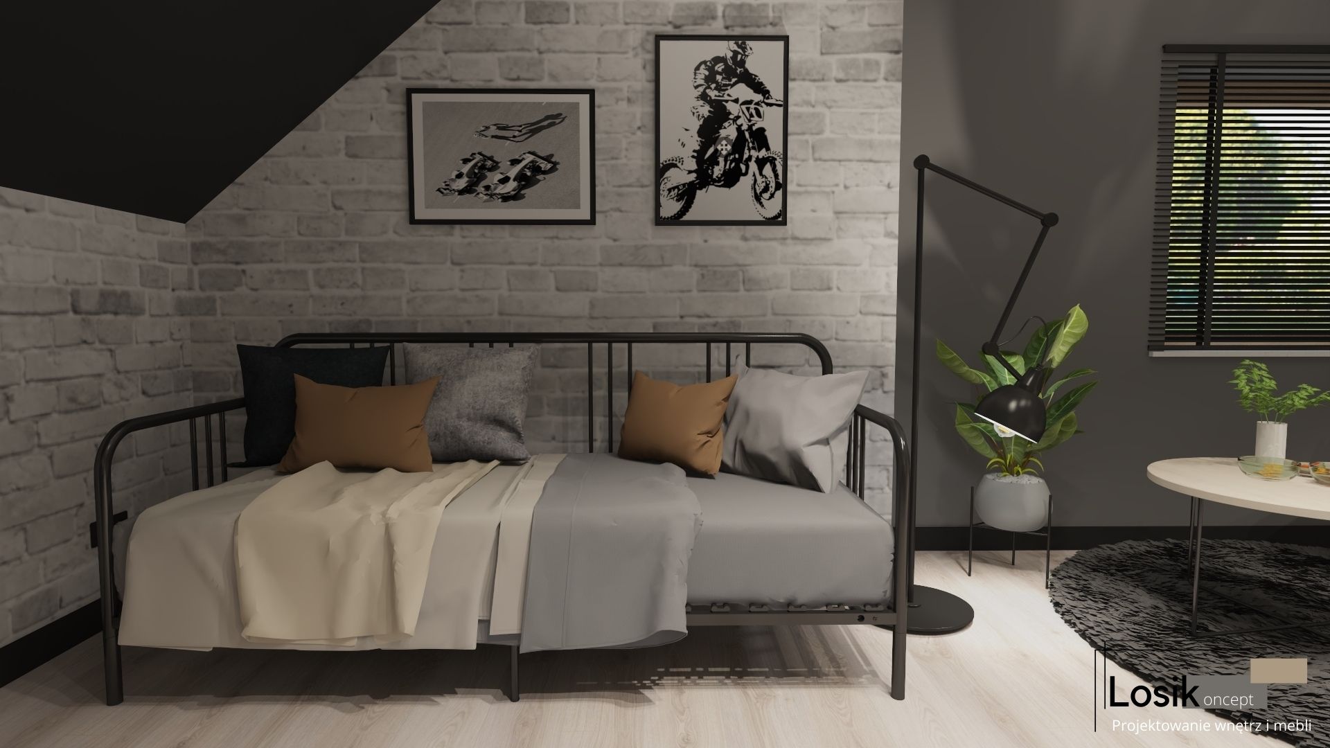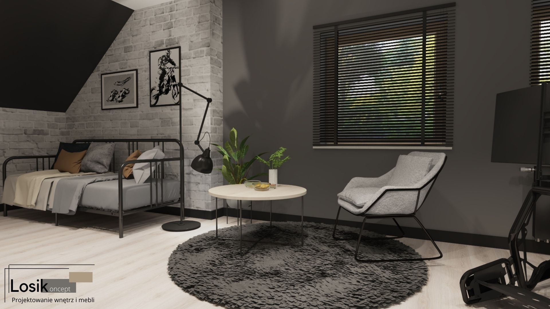Kochani, dziś przedstawiam Wam kolejny niezwykły pokój wykonany dla Nastolatka. Kreatywność i odwaga młodych Inwestorów 🙂 to gwarancja wspaniałego projektu, w którym królują ciemne kolory i metalowe elementy tworzące prawdziwe loftowe klimaty. Pomieszczenie ze skosem nie jest łatwym wnętrzem, ale jeśli dobrze je wykorzystamy, będzie idealnym miejscem relaksu. Tak jak w tym męskim pokoju z niecodziennymi metalowymi meblami😊.