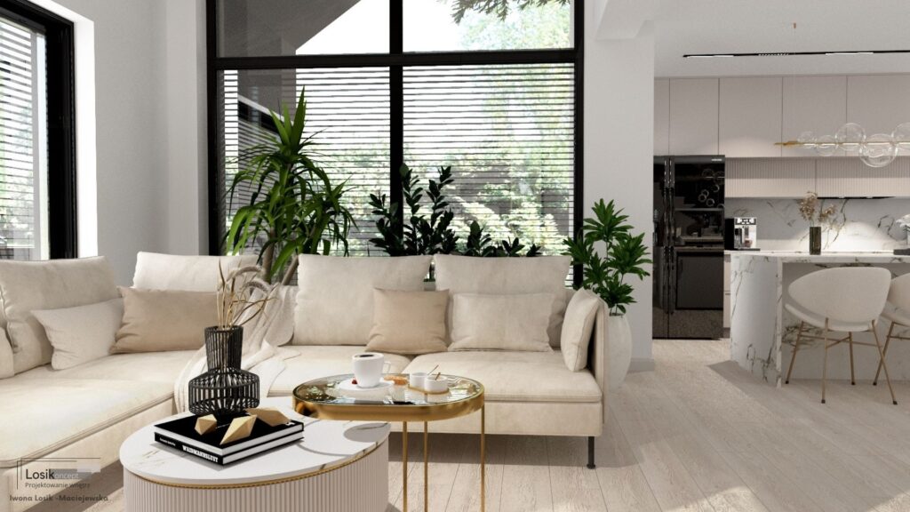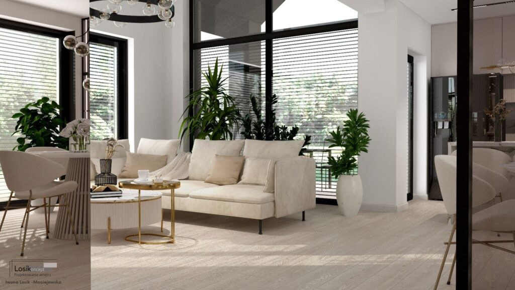 Kochani, dziś chciałabym podzielić się z Wami jednym z moich najnowszych projektów, który zrealizowałam w Kołobrzegu. Głównym założeniem było stworzenie przestronnego domu w jasnych tonacjach beżu, z ciemnymi akcentami, takimi jak oświetlenie szynowe, przyciemniane szyby balustrady schodów oraz mnóstwem roślin. Efekt? WOW! ![]()