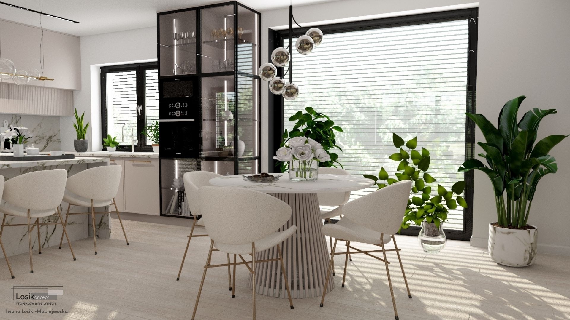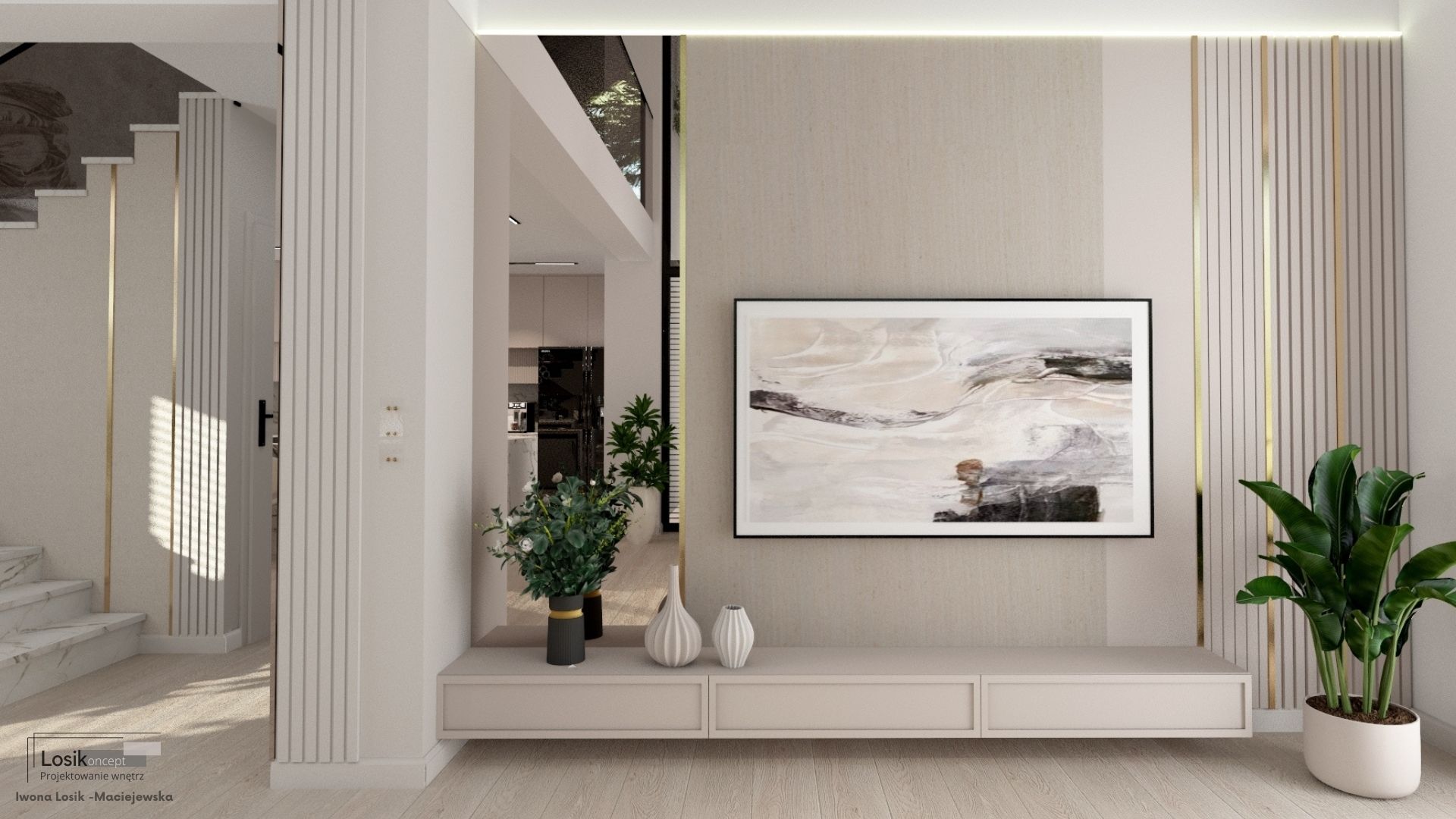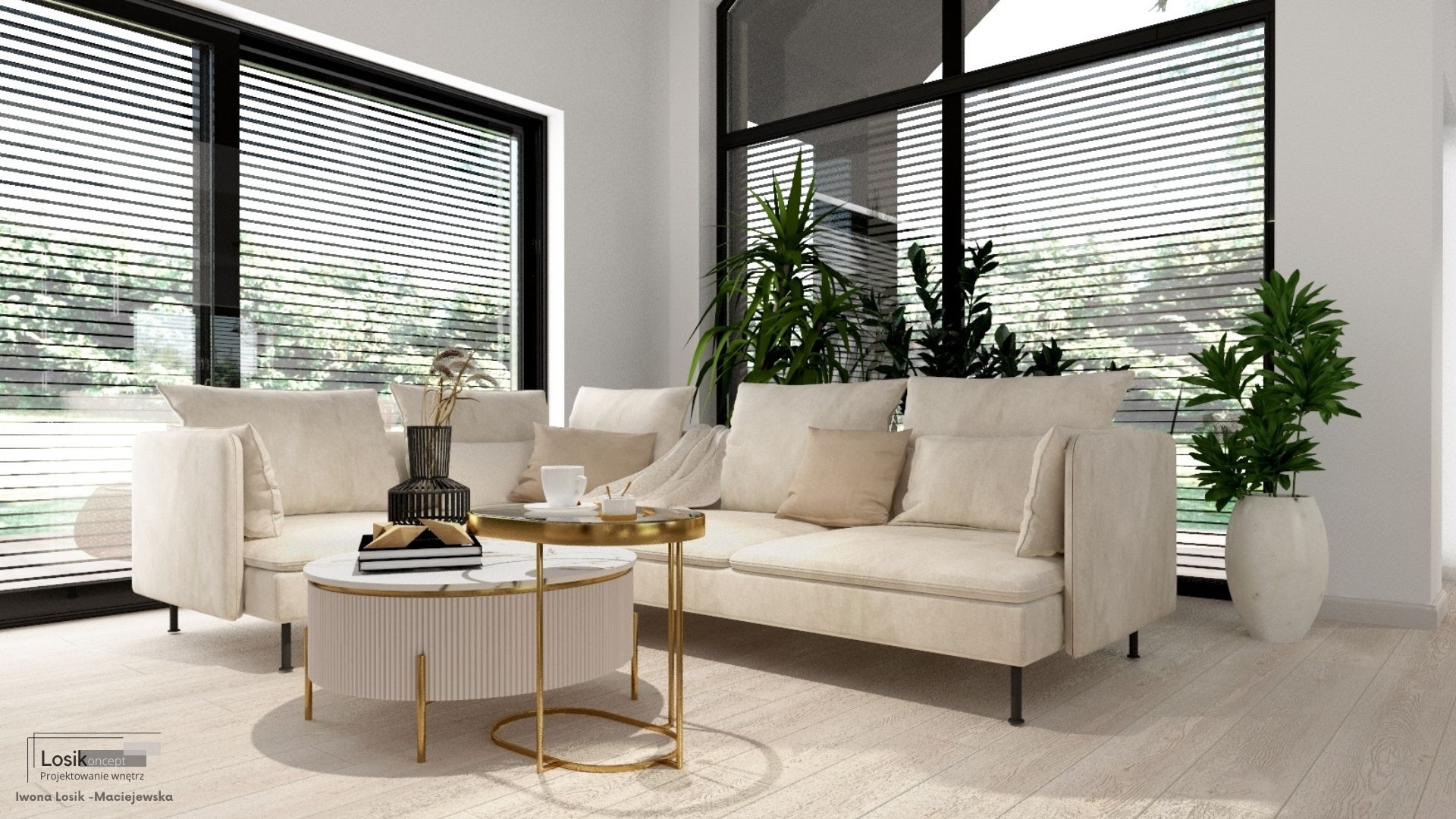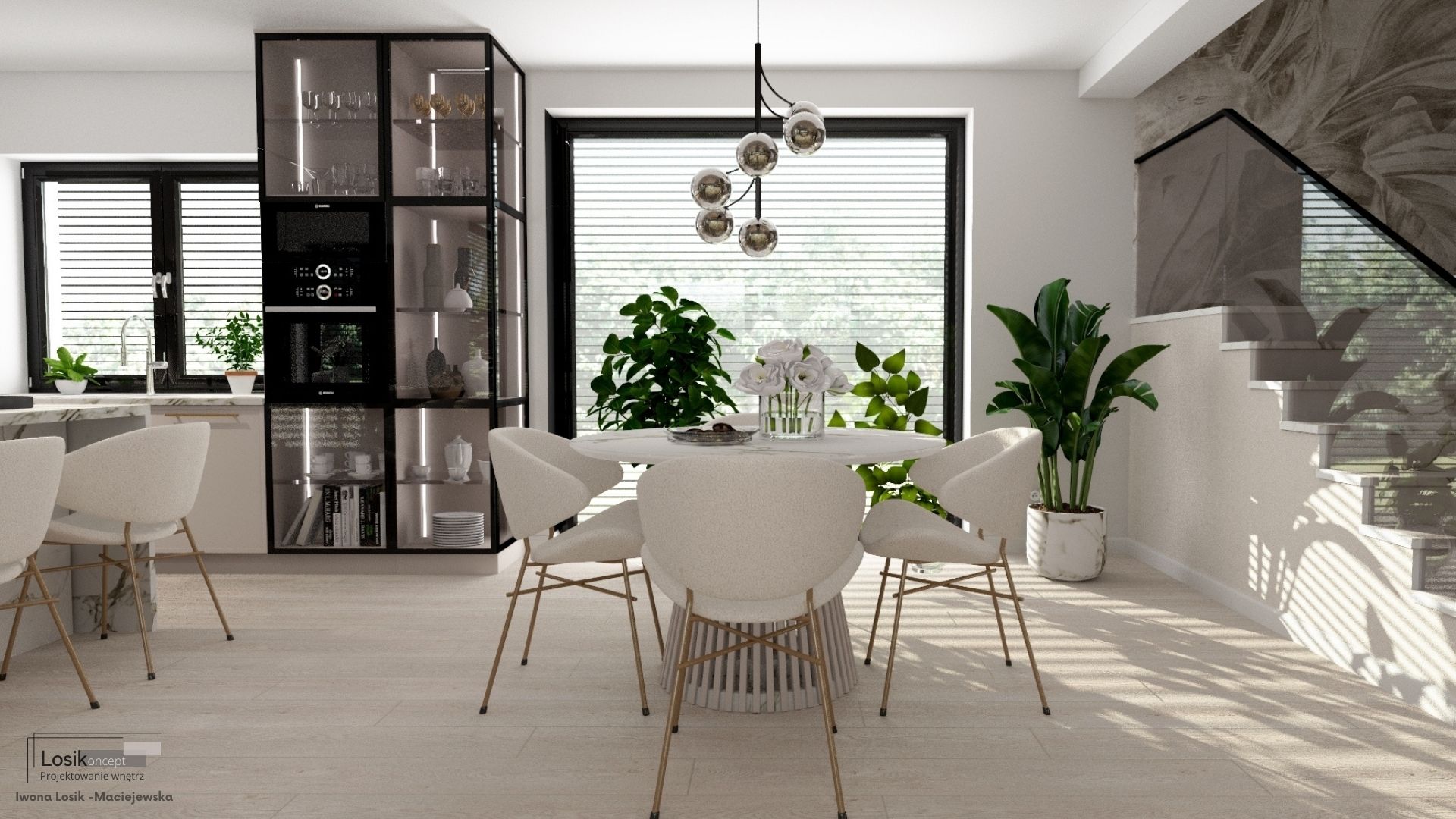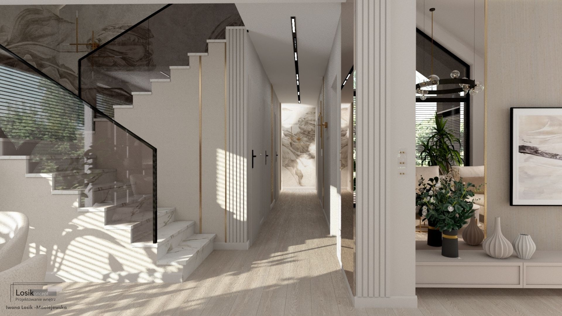 Kochani, dziś chciałabym podzielić się z Wami jednym z moich najnowszych projektów, który zrealizowałam w Kołobrzegu. Głównym założeniem było stworzenie przestronnego domu w jasnych tonacjach beżu, z ciemnymi akcentami, takimi jak oświetlenie szynowe, przyciemniane szyby balustrady schodów oraz mnóstwem roślin. Efekt? WOW! ![]()