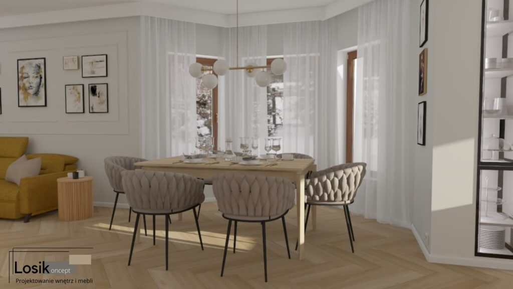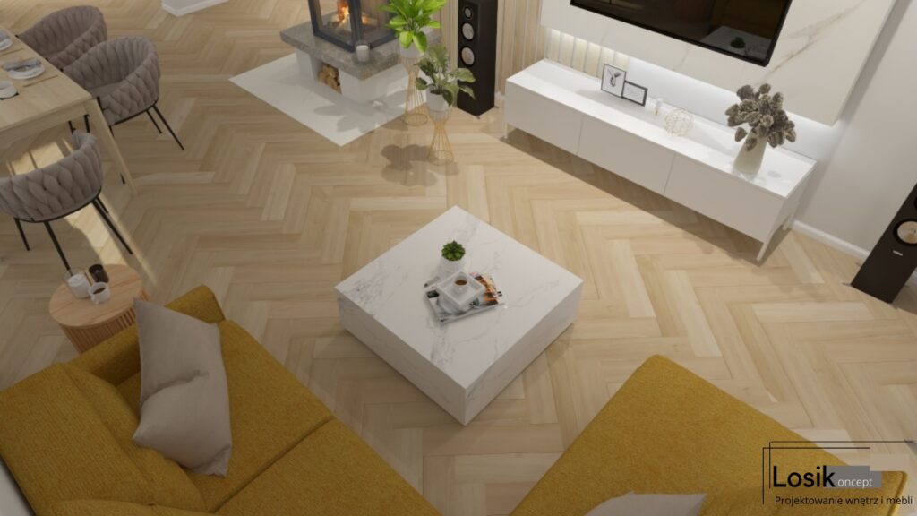 Biel, drewno, czerń – ponadczasowa kolorystyka sprawdzi się w każdym wnętrzu, a w tym wygląda pięknie i przytualnie.