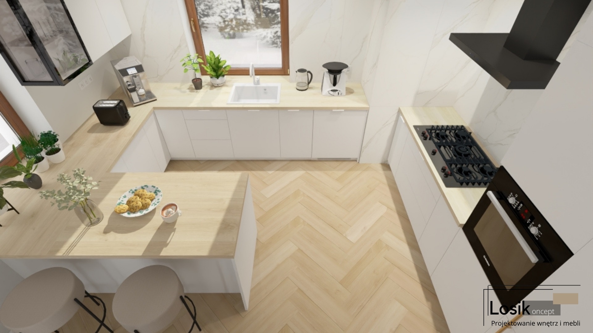 Projekt wnętrza, kuchnia (Niemica)