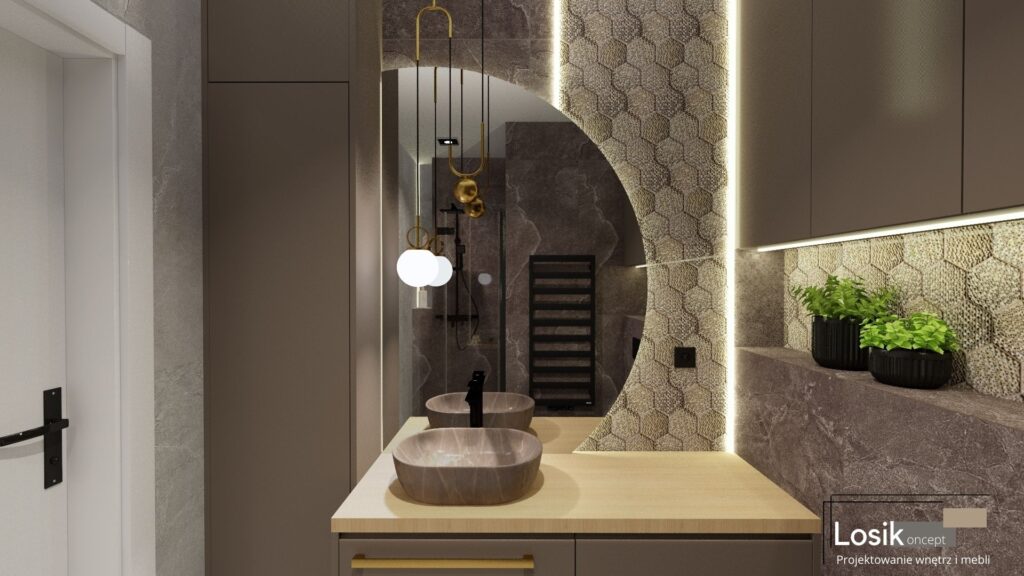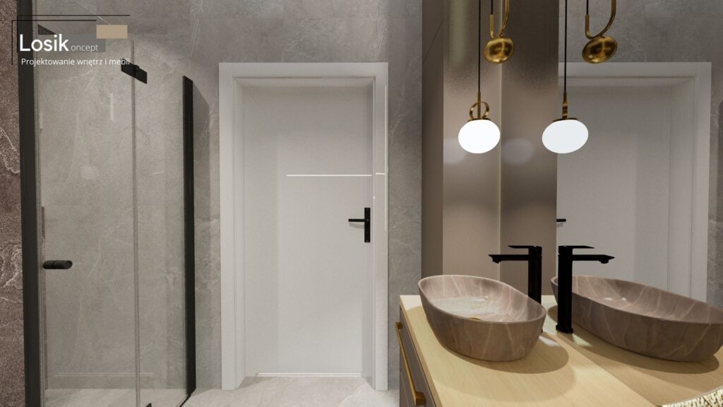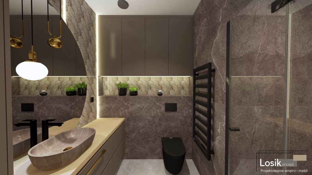Projekt wnętrza, Łazienka w Mechowie
