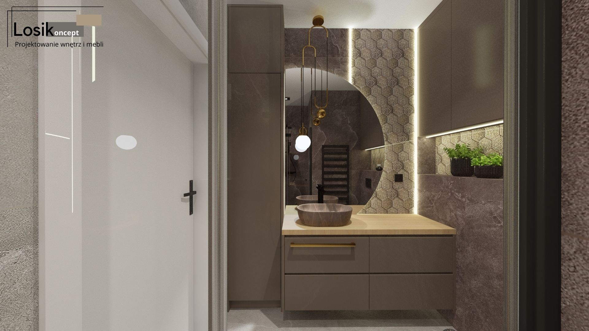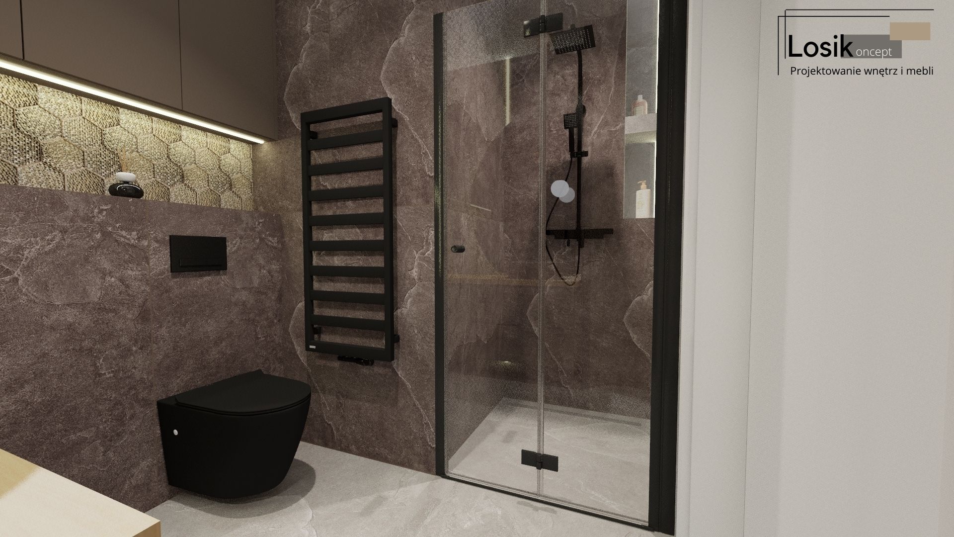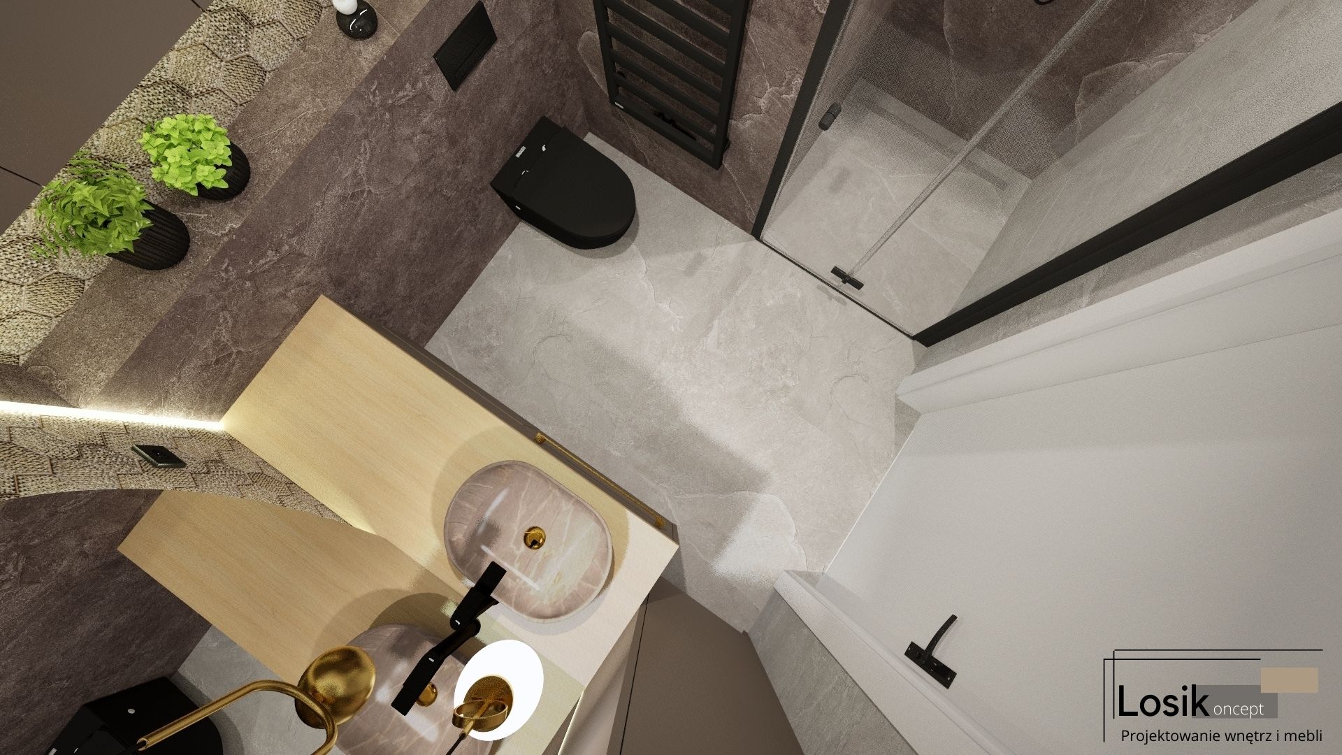 Projekt wnętrza, Łazienka w Mechowie